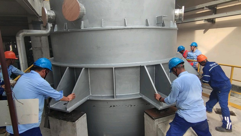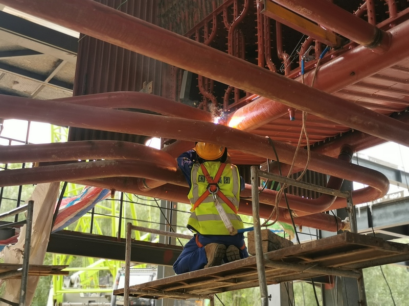 6月以來,持續的高溫(wēn)天氣給中匯鍋爐項目現場施工帶來巨大壓力,麵對烈日的炙烤,焊工、管工師傅不畏酷暑,認真組對、加緊焊接,保證鍋爐本體管道每一處焊(hàn)口完成;吊車駕駛員在駕駛室汗流浹背,進行著吊裝工作,保(bǎo)證了(le)受熱麵安裝的進度(dù);技術人員仔細核對圖紙細節,確保每處安裝節點與現場施工保持一致(zhì),對質量負責,對業主負責(zé)。在一線生產人員(yuán)開足馬力戰高溫,全力保證水壓試驗節點順利完成。