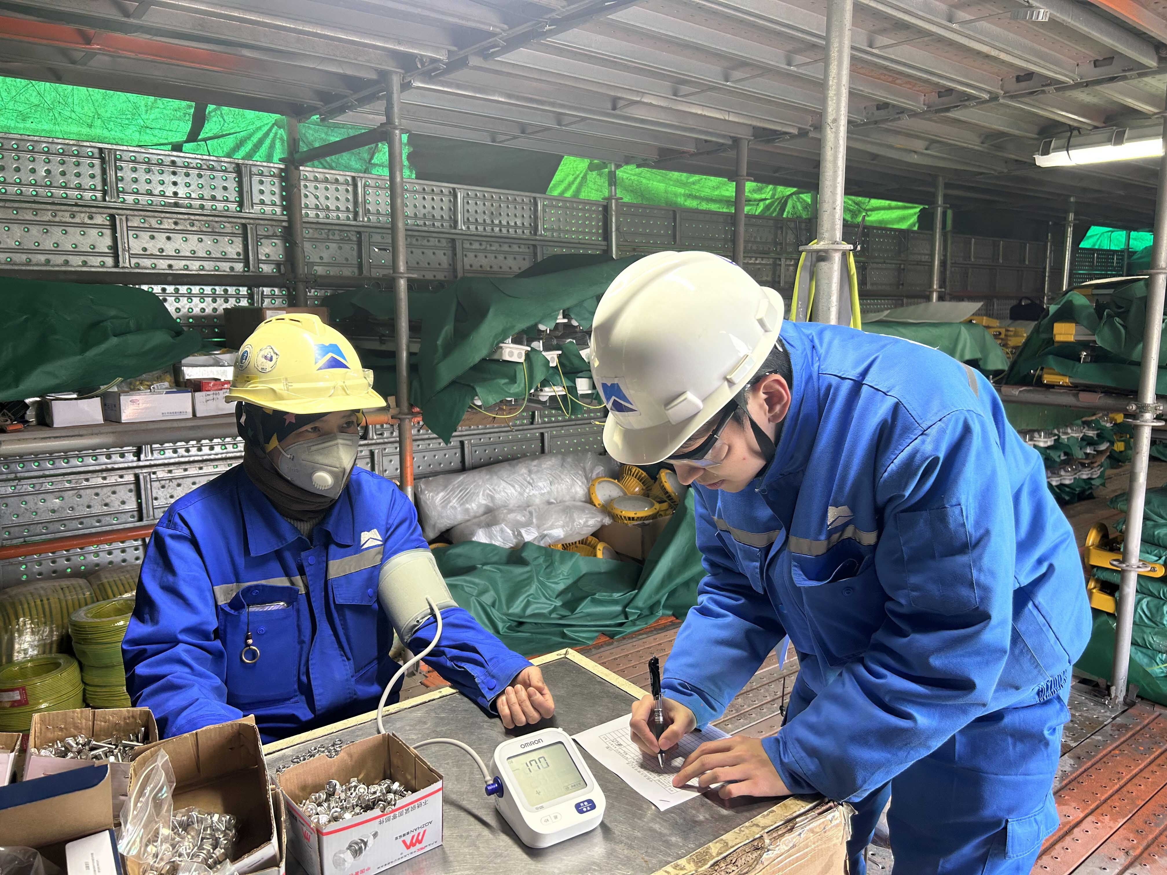 青(qīng)島分公司團支部誌願者們深入項(xiàng)目一(yī)線,開展血壓(yā)測量等基礎健康檢測(cè)誌願(yuàn)服務活(huó)動,細致(zhì)講解職業病防護及保健知識,耐心解(jiě)答(dá)大家關(guān)心的健康問題,築起(qǐ)工地健康防護屏障。